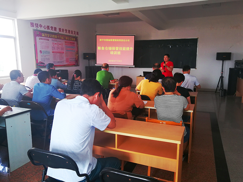2018年7月5日,儲(chǔ)備糧公司舉辦糧食倉(cāng)儲(chǔ)保管技能提升培訓(xùn)班,邀請(qǐng)廣西工商職業(yè)技術(shù)學(xué)院繼續(xù)教育部譚波教授講課。