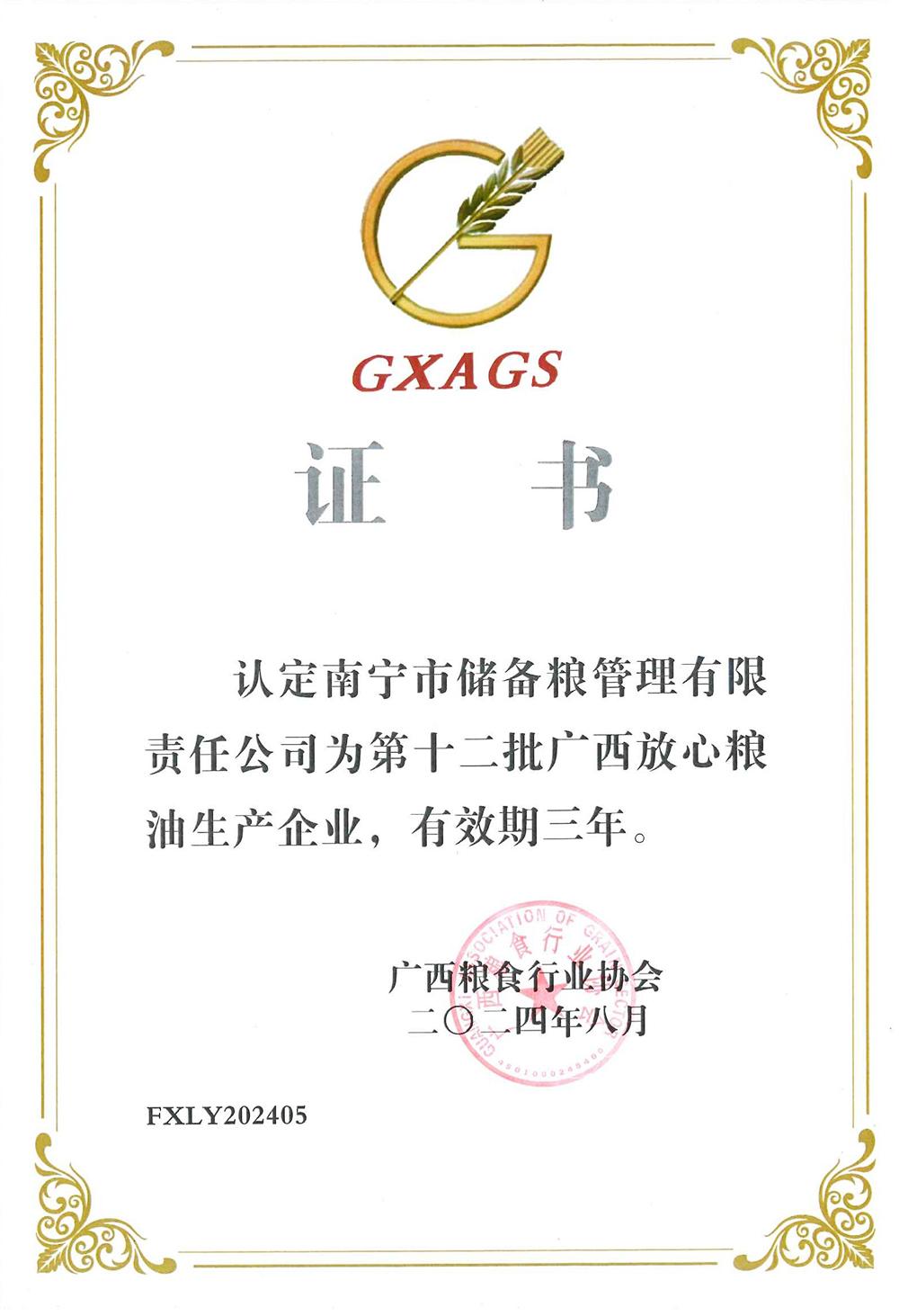 連續(xù)9年!南寧市儲(chǔ)備糧公司榮獲“廣西放心糧油生產(chǎn)企業(yè)”認(rèn)證