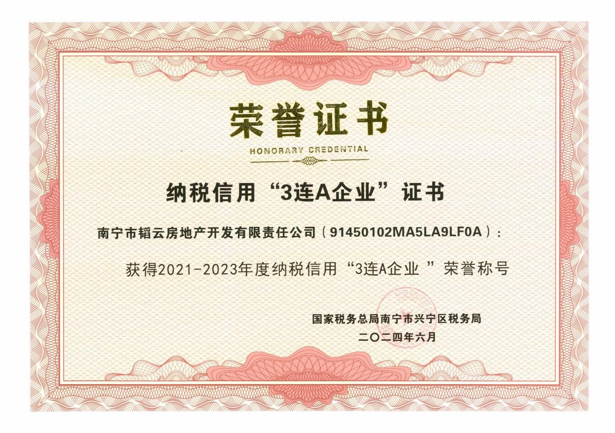 喜報(bào)!韜云公司榮獲2021-2023年度納稅信用“3連A企業(yè)”榮譽(yù)稱號(hào)