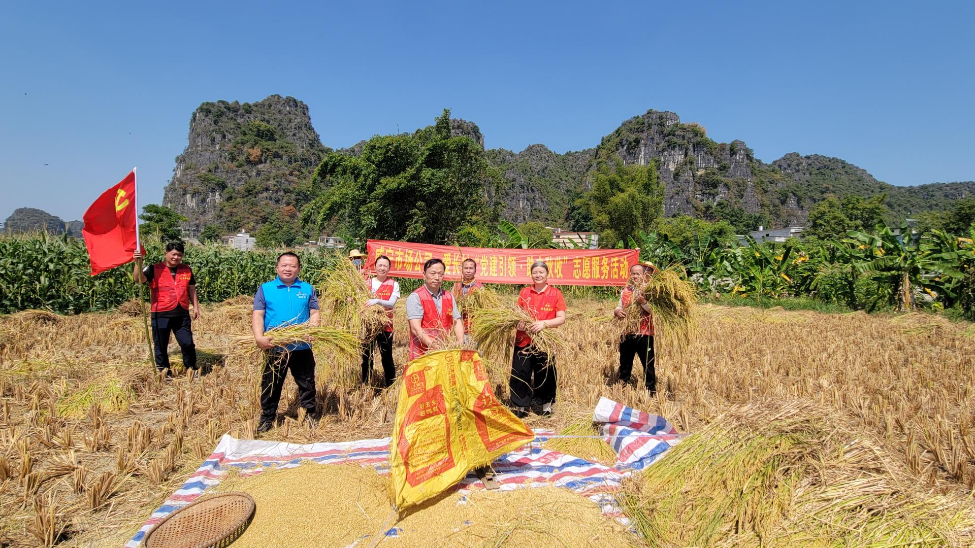 金秋時(shí)節(jié)稻花香,黨建引領(lǐng)助秋收。2022年10月17日上午,身穿紅馬甲的威寧市場(chǎng)公司“威慧星”黨員志愿者忙碌的身影活躍在定點(diǎn)幫扶村上林縣白圩鎮(zhèn)愛長(zhǎng)村的田間地頭,開展新時(shí)代文明實(shí)踐“黨建引領(lǐng)·助農(nóng)秋收”志愿服務(wù)活動(dòng),幫助缺乏勞動(dòng)力的村民群眾解決生產(chǎn)生活上的實(shí)際困難。據(jù)悉,愛長(zhǎng)村脫貧戶韋夢(mèng)玉今年種的稻谷長(zhǎng)勢(shì)喜人,眼看到了稻谷收獲的季節(jié),卻因?yàn)榧依锏闹饕獎(jiǎng)趧?dòng)力外出打工因特殊情況無(wú)法回家收割稻谷,為此,...
