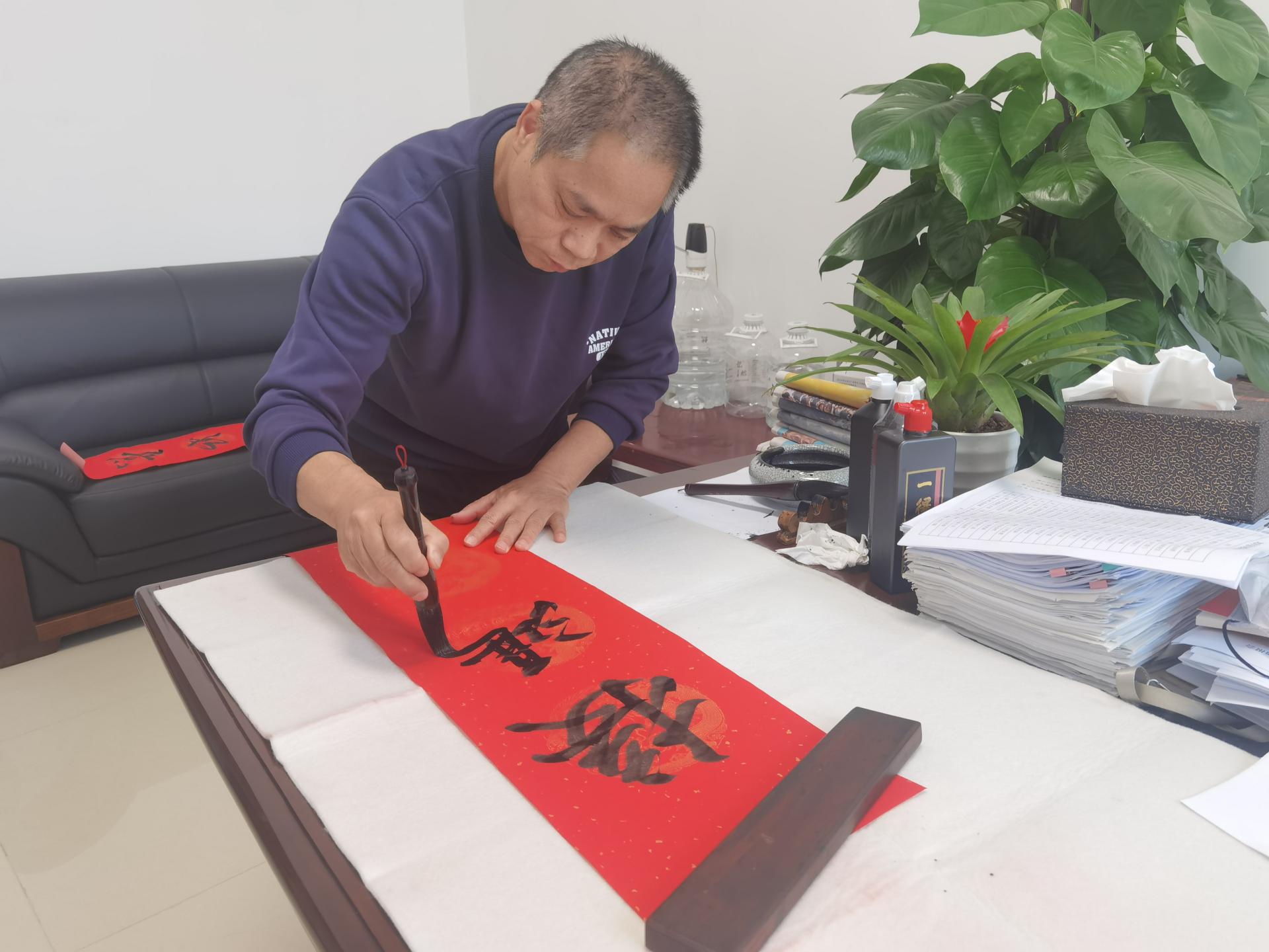 墨香寫(xiě)福添喜氣 揮毫筑夢(mèng)新時(shí)代——威邕公司開(kāi)展寫(xiě)春聯(lián)送?;顒?dòng)