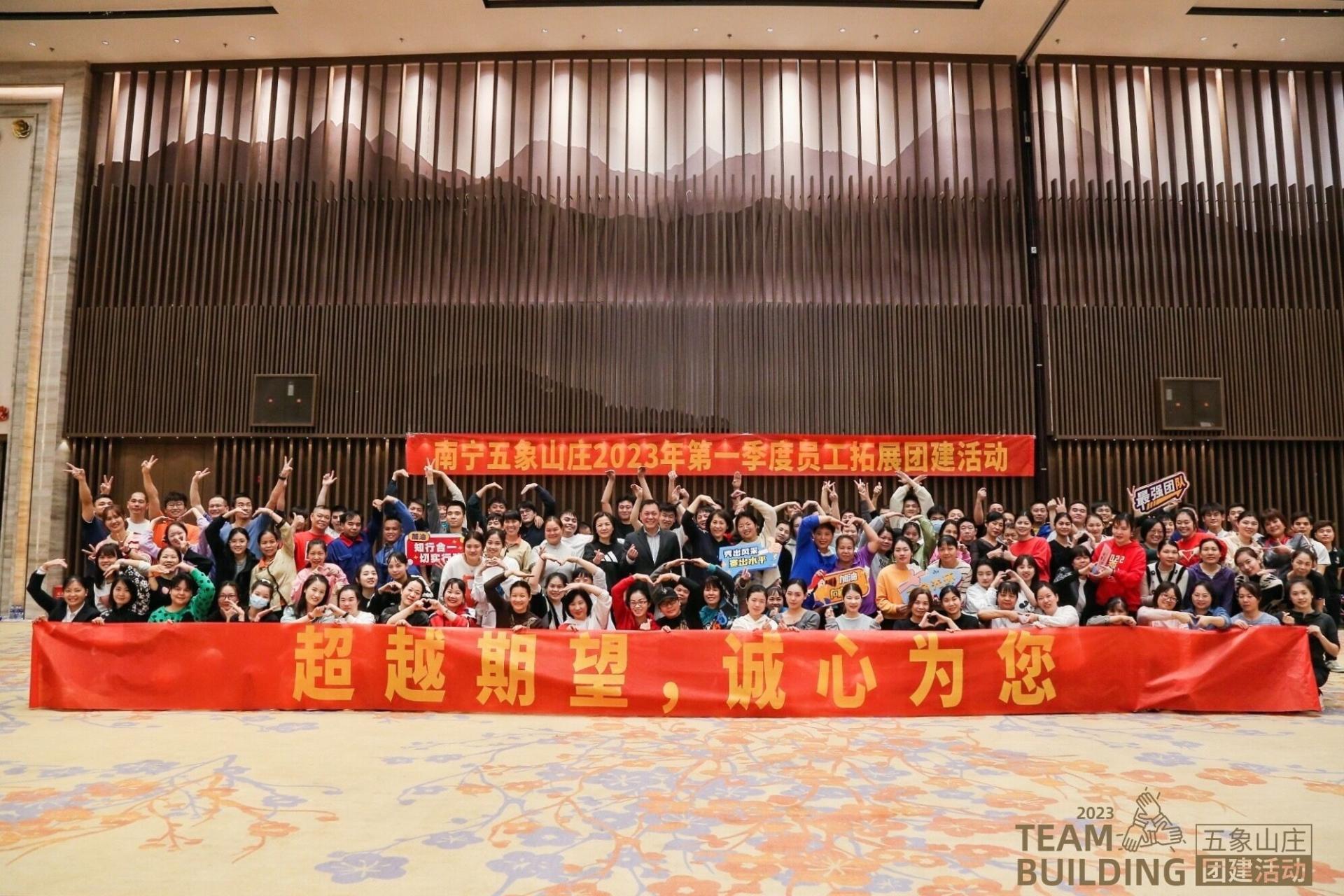 基業(yè)長(zhǎng)青、飛盤(pán)嘉年華、俄羅斯方塊、使命必達(dá)……近日,在五象山莊11號(hào)樓大宴會(huì)廳,一場(chǎng)以“團(tuán)結(jié)奮斗,超越期望”為主題的團(tuán)建活動(dòng)現(xiàn)場(chǎng)如火如荼,五象山莊公司共160多名職工踴躍參與。為豐富職工文化生活,體驗(yàn)團(tuán)隊(duì)合作帶來(lái)的快樂(lè)和榮譽(yù),助力打造優(yōu)秀團(tuán)隊(duì),進(jìn)一步提升全體職工的企業(yè)歸屬感和團(tuán)隊(duì)凝聚力,五象山莊組織開(kāi)展了2023年第一季度團(tuán)建活動(dòng)。公司董事長(zhǎng)唐海波在動(dòng)員講話中指出,面對(duì)后疫情激烈的市場(chǎng)競(jìng)爭(zhēng)形勢(shì),酒店如何...