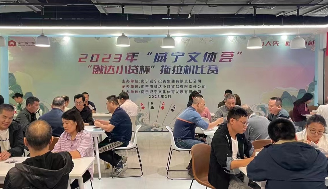 ??“棋牌文化聚同心,民族團(tuán)結(jié)樂融融”。為進(jìn)一步豐富員工的業(yè)余生活,增進(jìn)集團(tuán)員工的凝聚力,營造團(tuán)結(jié)和諧融洽的工作環(huán)境,3月11日,由南寧威寧集團(tuán)主辦、融達(dá)小貸公司承辦、威寧文體公司協(xié)辦的2023年威寧文體薈“融達(dá)小貸杯”拖拉機(jī)比賽在威寧總部大廈優(yōu)食智谷餐廳熱火朝天地拉開了序幕,此次比賽吸引了來自威寧集團(tuán)系統(tǒng)內(nèi)百余名選手參加比賽,現(xiàn)場氣氛“嗨”不停!上午9時,隨著裁判員的一聲令下,共有18桌牌局同...