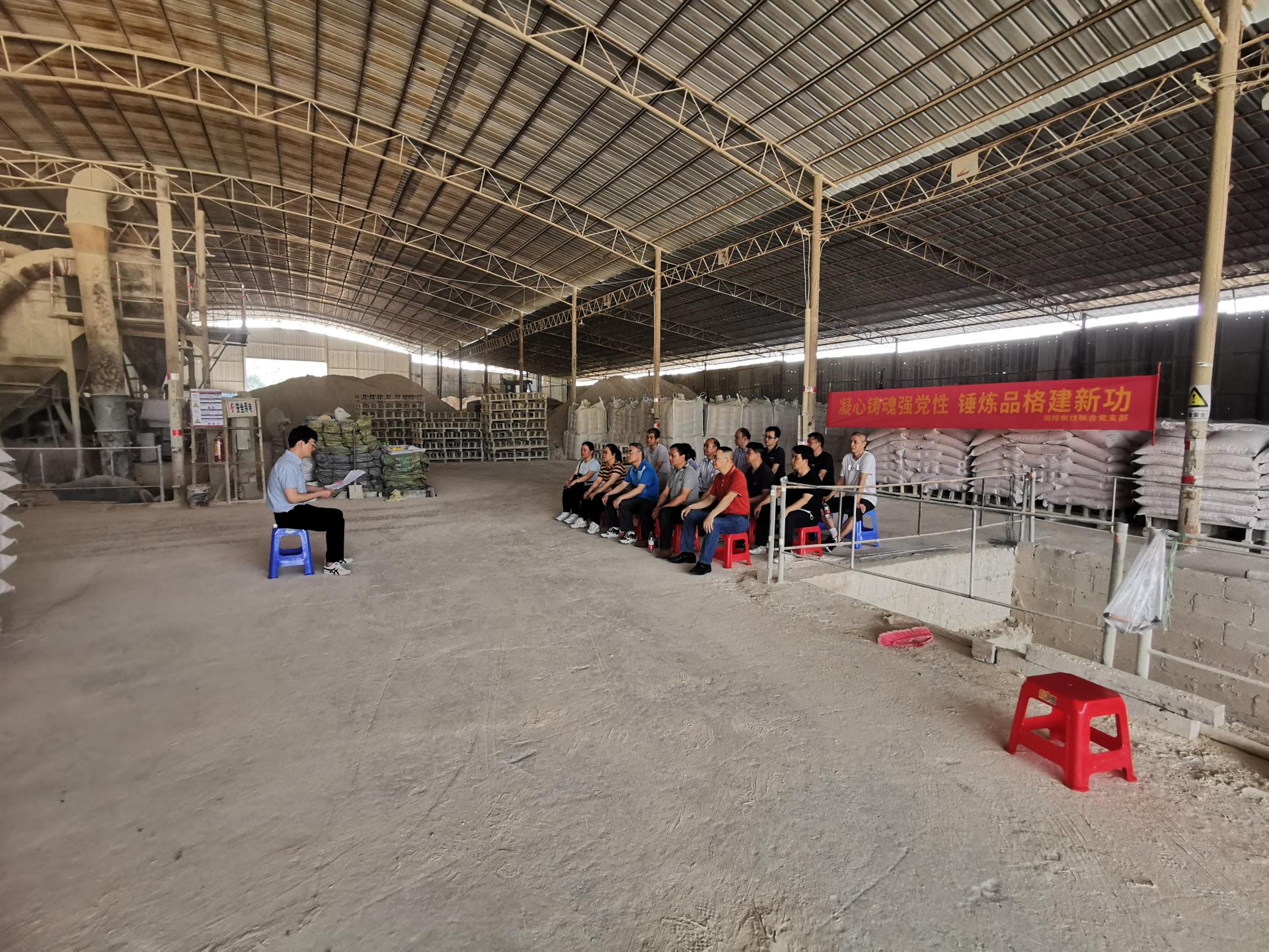 為強(qiáng)化公司黨建引領(lǐng)作用,深入推進(jìn)黨建與生產(chǎn)工作緊密融合,近日,威潤聯(lián)合黨支部到桂泥公司經(jīng)營場所——壇淋加工廠上了一堂別開生面的現(xiàn)場黨課。在離市區(qū)幾十公里外的壇淋加工廠廠房內(nèi),公司黨員和礦產(chǎn)經(jīng)營部員工通力合作,拉橫幅、搬凳子、清理場地,很快在生產(chǎn)車間搭起了“接地氣”的臨時(shí)黨課學(xué)堂。威潤工貿(mào)公司聯(lián)合黨支部委員、副總...
