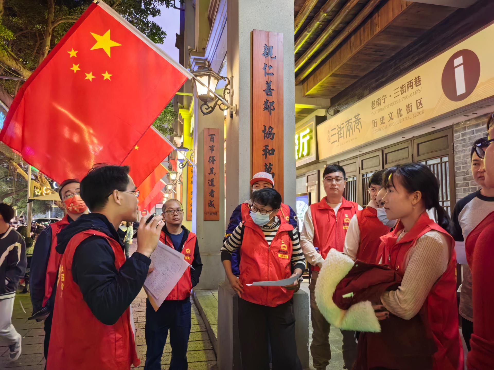 2023年12月31日跨年夜,南寧全城沸騰,邕州古城·三街兩巷舉辦的“古城新禮 邕派生活”迎新活動更是人潮涌動。為更好發(fā)揮志愿服務(wù)在保障各級重大活動中的重要作用,12月31日至1月1日凌晨,威邕城市運營集團機關(guān)聯(lián)合黨支部、銀河公司聯(lián)合黨支部組織黨員志愿者在邕州古城·三街兩巷集體跨年,用“威邕紅”扮靚“志愿紅”。當天晚上,志愿者們在邕州古城·三街兩巷的各個客流高度密集區(qū)域開展文明秩序維...