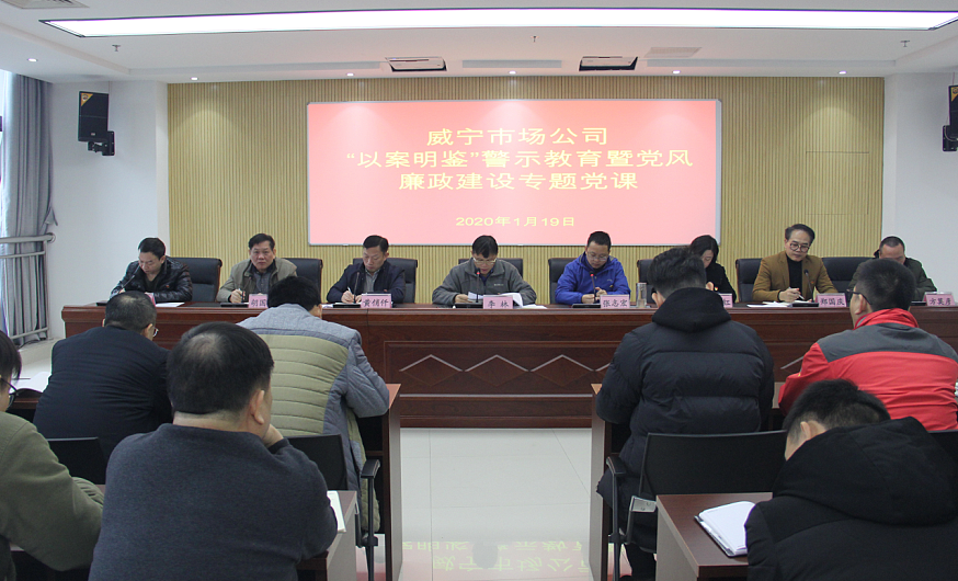 2020年1月19日,威寧市場公司開展“以案明鑒”警示教育暨黨風廉政建設(shè)專題黨課,利用“身邊人”“身邊事”教育黨員領(lǐng)導干部,促進黨員干部思想上受到洗禮、內(nèi)心上引起反思、行動上明確邊界。