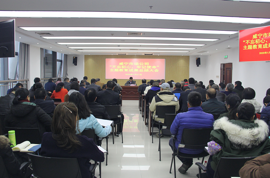 2020年1月21日,威寧市場公司召開“不忘初心、牢記使命”主題教育總結(jié)大會,深入學習貫徹黨中央、自治區(qū)黨委、市委和集團黨委會議精神,總結(jié)市場公司主題教育工作,對鞏固拓展主題教育成果進行部署。