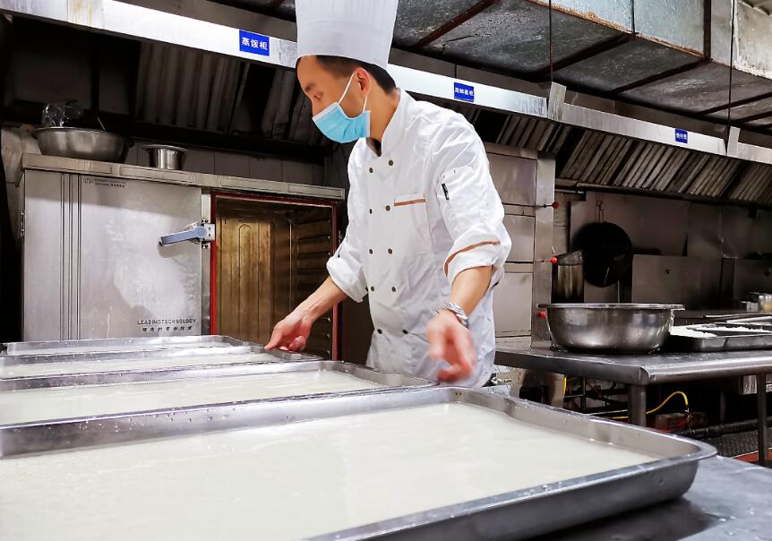 自鄉(xiāng)村大世界被明確為南寧市新型冠狀病毒肺炎密切接觸者觀察點(diǎn)以來,鄉(xiāng)村大世界全體員工都堅(jiān)守在自己的崗位上,默默奉獻(xiàn)著自己的一份力量。想著盒飯如何搭配更營養(yǎng)、變花樣地烹飪美味飯菜、心靈手巧設(shè)計(jì)打包盒……這些都是掌勺廚師們的日常。他們忙碌的身影里,有那么一個(gè)人,他總是在得閑的時(shí)候,跟在衛(wèi)監(jiān)工作人員、醫(yī)生身后,仔細(xì)了解觀察點(diǎn)工作進(jìn)展,溝通客人餐飲需求,他就是鄉(xiāng)村大世界的廚師長——李勇其。
