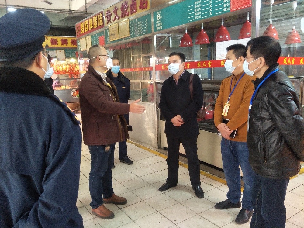 2020年2月12日,南寧威寧集團(tuán)副總經(jīng)理黎鎮(zhèn)宇一行到威寧市場公司經(jīng)營管理的飛鳳市場、邕寧商場,開展新型冠狀病毒感染的肺炎疫情防控和消防安全工作檢查。