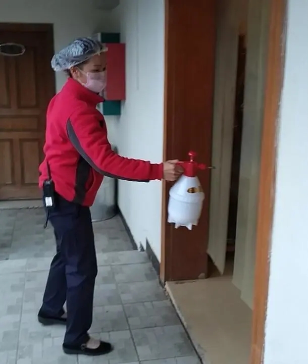 “下一批隔離觀察人員即將入住,我們要進(jìn)行全面消毒和清理,配合衛(wèi)生部門做好接待工作?!苯眨卩l(xiāng)村大世界服務(wù)臺,客房保障組組長林志芬剛送走解除隔離觀察的住客,便開始布置任務(wù),與同組組員沈桂米一起再次投入到新一輪的客房準(zhǔn)備工作中。