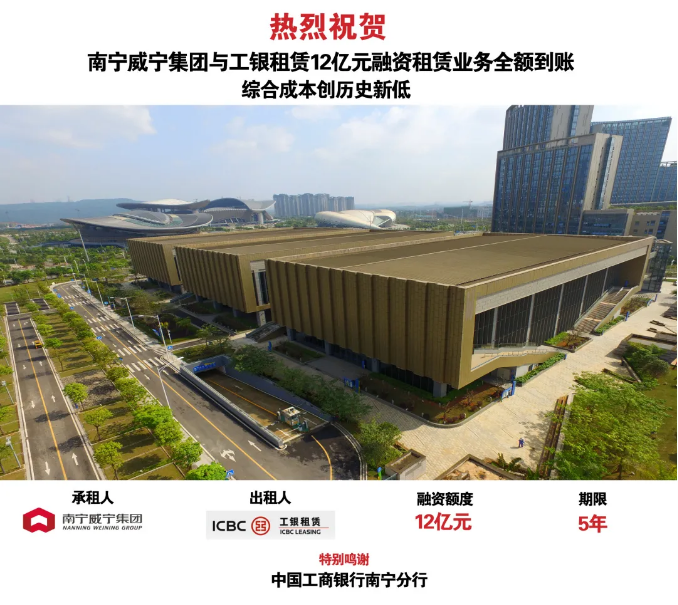 2020年7月31日和8月31日南寧威寧集團(tuán)分別與工銀租賃、招商局租賃開展融資租賃(售后回租)業(yè)務(wù),期限五年。本次融資到位金額約17億元,綜合融資成本創(chuàng)租賃業(yè)務(wù)融資成本歷史新低。
