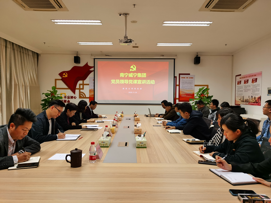黨課現(xiàn)場集團(tuán)黨委副書記、總經(jīng)理劉巧瑛同志講話“我們要充分認(rèn)識“十三五”以來黨和國家事業(yè)取得的重大成就,全面把握《建議》部署要求,立足崗位,攻堅(jiān)克難,以更加奮發(fā)有為的姿態(tài)邁向新征程?!?020年11月25日,集團(tuán)黨委副書記、總經(jīng)理劉巧瑛同志給黨支部工作聯(lián)系點(diǎn)威邕公司黨支部全體黨員上了一堂以貫徹十九屆五中全會精神、黨風(fēng)廉政教育為主題的生動黨課,進(jìn)一步凝聚共識、匯聚力量,為全面貫徹落實(shí)強(qiáng)首府戰(zhàn)略、沖刺集