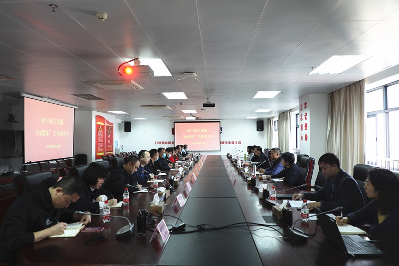 為充分利用集團(tuán)內(nèi)部資源,形成集團(tuán)內(nèi)部優(yōu)勢互補(bǔ)、資源共享的“內(nèi)循環(huán)”發(fā)展新格局,暢通集團(tuán)內(nèi)部大循環(huán),聯(lián)動內(nèi)外雙循環(huán),促進(jìn)集團(tuán)經(jīng)濟(jì)持續(xù)回暖向好發(fā)展,2月20日上午,集團(tuán)副總經(jīng)理滕振旗主持召開集團(tuán)“內(nèi)循環(huán)”工作布置會。會上,集團(tuán)企業(yè)管理部就日前印發(fā)的《南寧威寧投資集團(tuán)有限責(zé)任公司“內(nèi)循環(huán)”工作總體方案》進(jìn)行了宣貫。集團(tuán)各有關(guān)部門、各監(jiān)管單位依次發(fā)言,大家一致認(rèn)為結(jié)合現(xiàn)階段發(fā)展實(shí)際,集團(tuán)開展“內(nèi)循環(huán)”工作