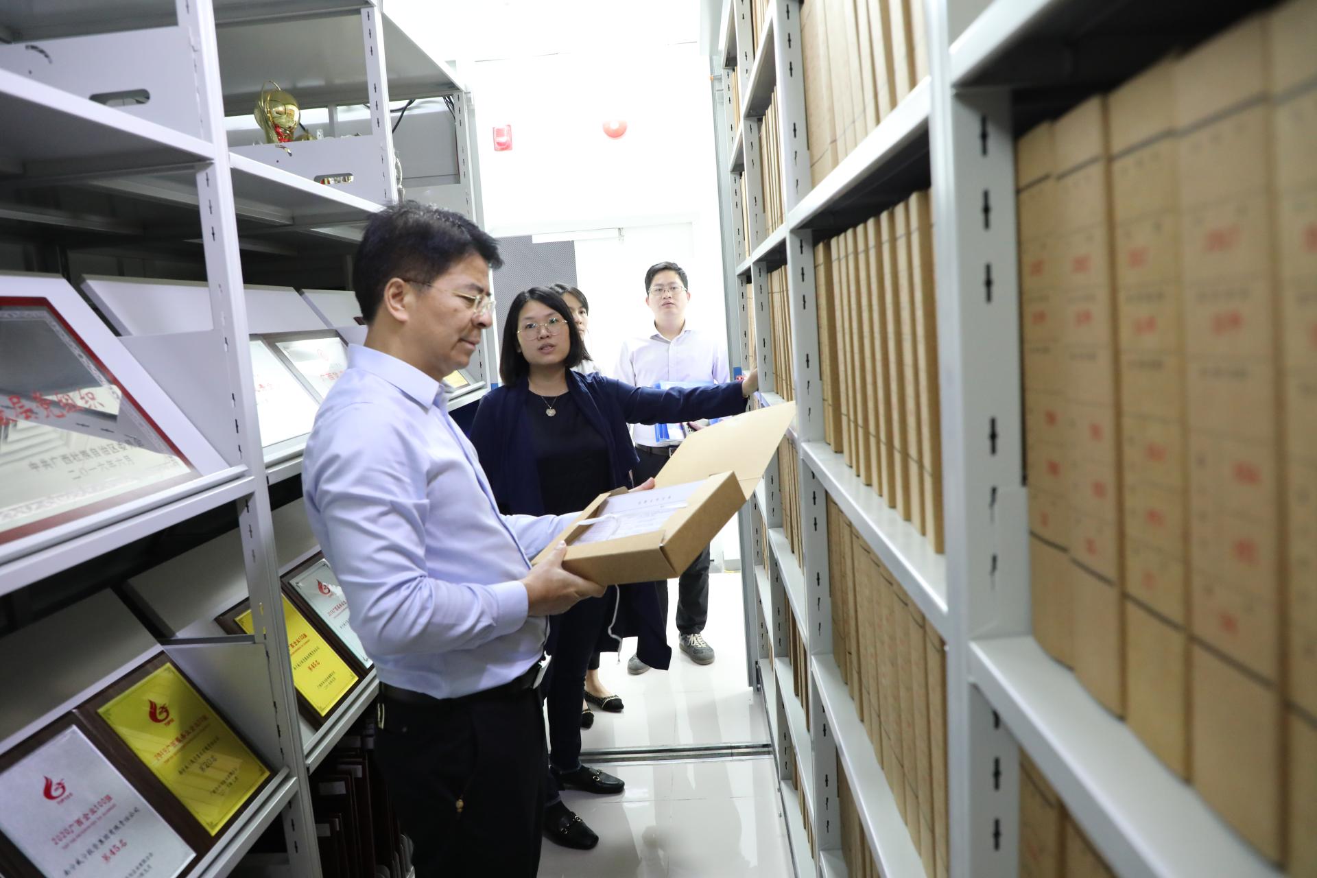 ???為切實(shí)抓好集團(tuán)公司改革重組過(guò)程中檔案處置工作,2023年5月9日,南寧威寧集團(tuán)副總經(jīng)理韋義勇實(shí)地檢查集團(tuán)公司檔案工作。集團(tuán)公司辦公室相關(guān)負(fù)責(zé)人陪同檢查。檢查中,韋義勇到檔案管理中心先后檢查檔案整理室、檔案庫(kù)房及檔案閱覽室,并聽取檔案工作人員關(guān)于檔案用房、硬件設(shè)施設(shè)備及2022年度檔案整理等方面工作情況的匯報(bào)。韋義勇強(qiáng)調(diào),檔案工作是企業(yè)人、財(cái)、物、事的真實(shí)記錄,企業(yè)檔案工作作為企業(yè)各項(xiàng)工作的...