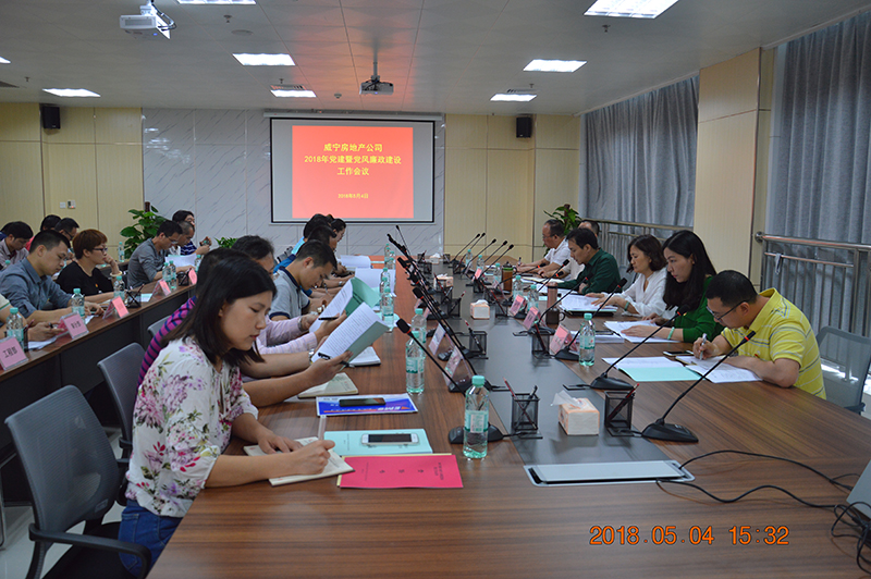 2018年5月4日,南寧威寧集團副總經理、威寧房地產公司黨總支書記朱海主持召開威寧房地產公司2018年黨建暨黨風廉政建設工作會議。對2017年黨建及黨風廉政建設工作進行總結回顧,對2018年工作進行安排部署。
